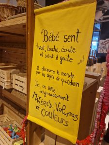 Les installations sont pensées pour les bébés qui commencent à explorer leur environnement : ramper, se redresser, manipuler, observer.