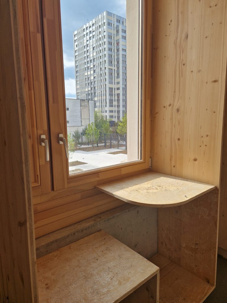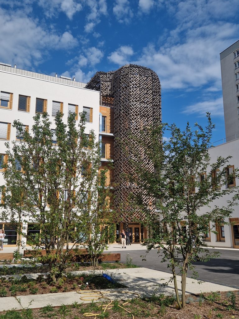 Le projet, conçu par Philippe Madec et son équipe, mise sur une approche bioclimatique : conservation d’une partie de la structure existante, matériaux durables (dont de la terre crue), ventilation naturelle, lumière abondante, toitures végétalisées et jardins ouverts sur le quartier.